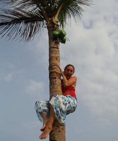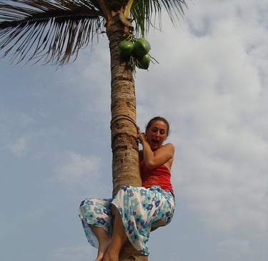 É por isso que viagens memoráveis não se medem em quilómetros, mas em momentos como aquele — em que alguém (como eu, há 19 anos) decidiu subir a um coqueiro só porque o coração pediu.
